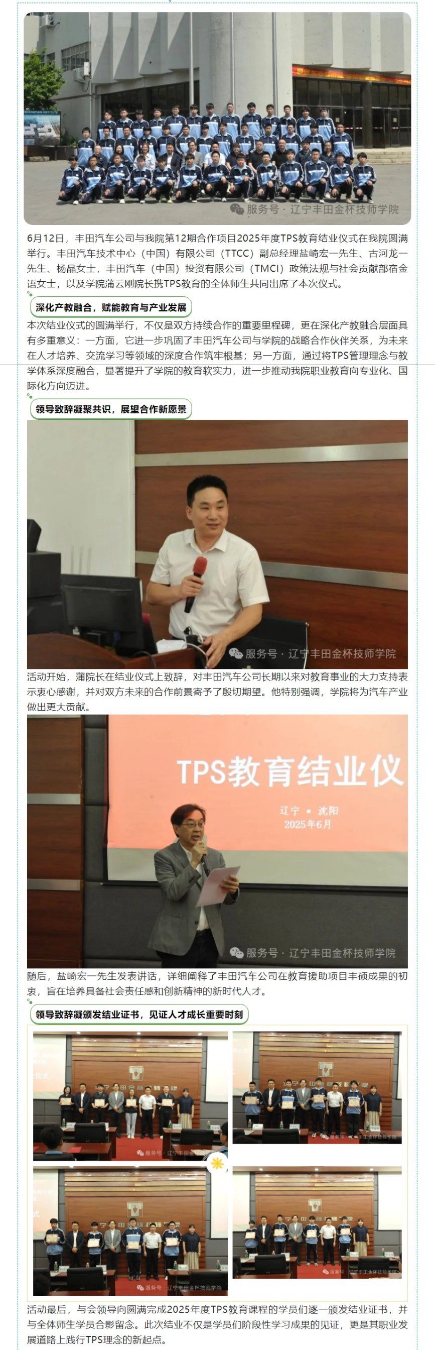 丰田汽车公司与我院第12期合作项目2025年度TPS教育圆满结业